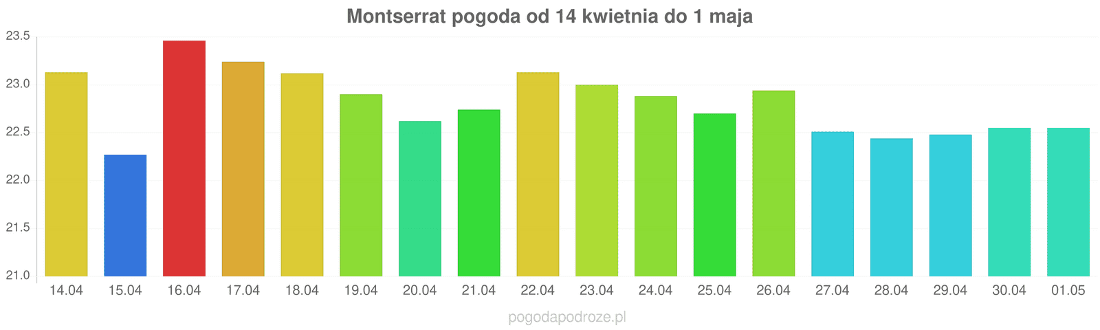 Według prognozy długoterminowej za tydzień w Montserracie temperatura będzie spadać, w ciągu dnia można będzie obserwować temperatury około 23 stopnie.