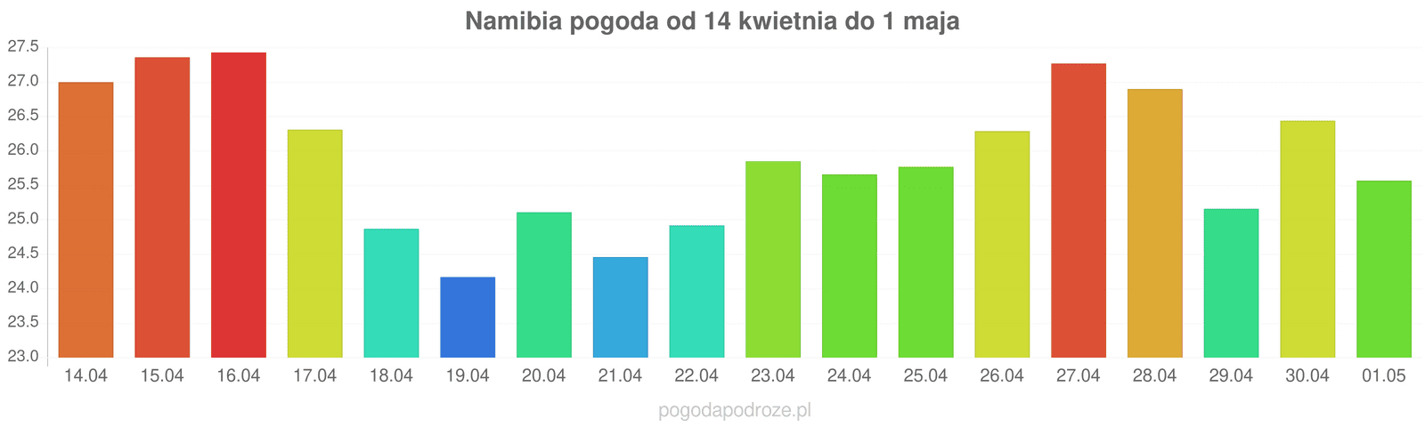 Jeśli damy wiarę prognozom z odstępem czasu 7 dni to czeka nas ochłodzenie w Namibi w przyszłym tygodniu. Temperatura w ciągu dnia powinna spaść do 26 stopni.