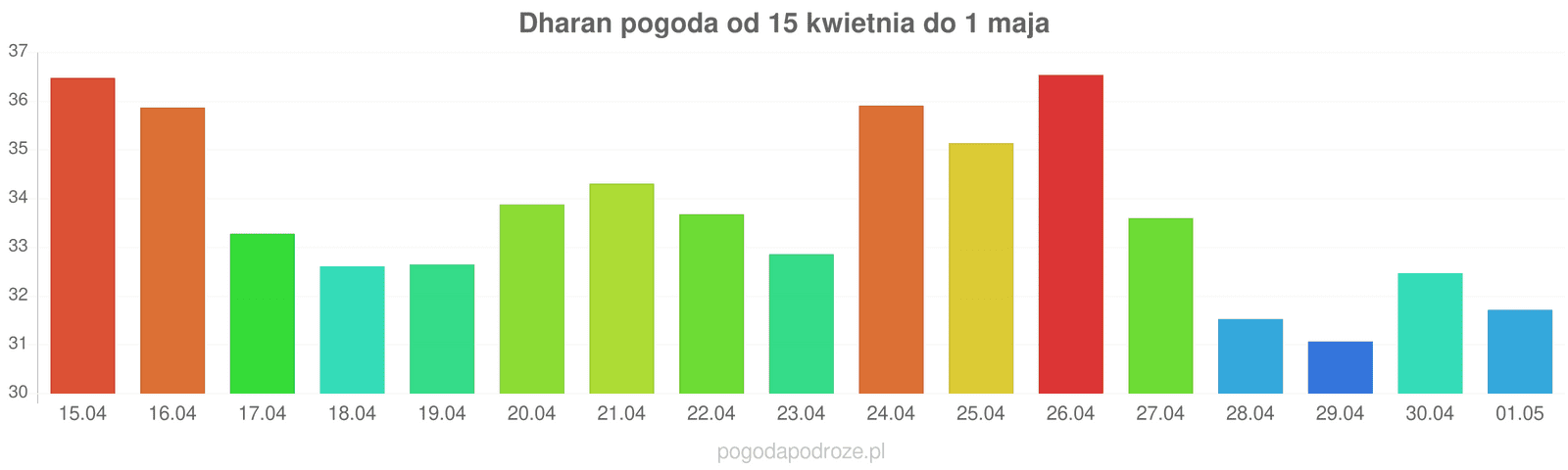 Jeśli damy wiarę prognozom z odstępem czasu 7 dni to czeka nas ochłodzenie w Dharan w przyszłym tygodniu. Temperatura w ciągu dnia powinna spaść do 33 stopni.