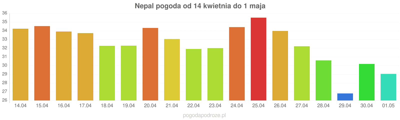 W przypadku dnia jutrzejszego można mówić o spadku temperatury w Nepalu. Słupek termometry spadnie i wyniesie w ciągu dnia 34 stopnie.