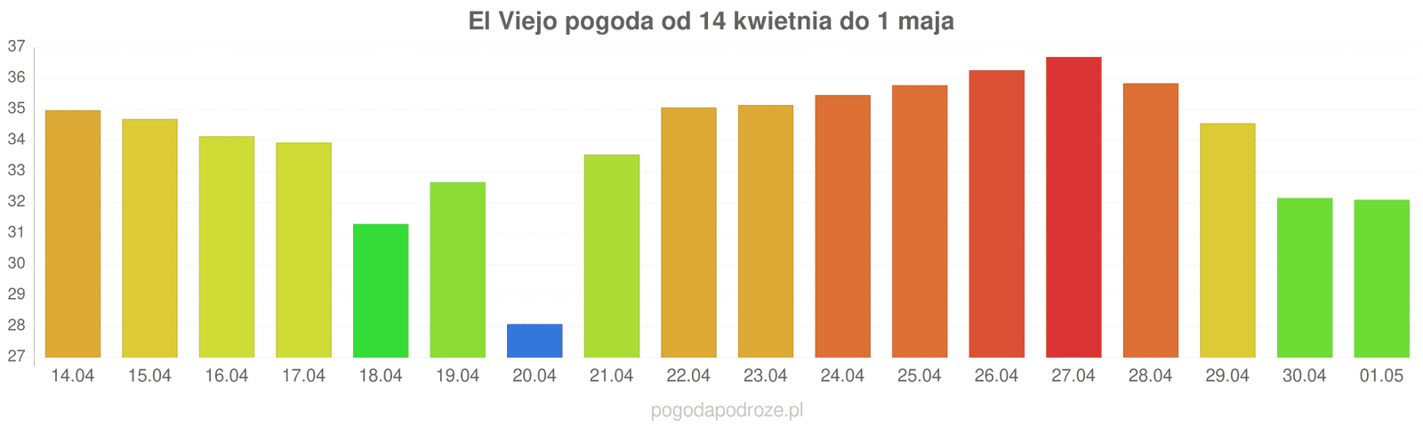 Jeśli wierzyć prognozom z odstępem czasu 7 dni to czeka nas dużo ciepła w El Viejo w przyszłym tygodniu. Temperatura w ciągu dnia osiągnie 35 stopni.