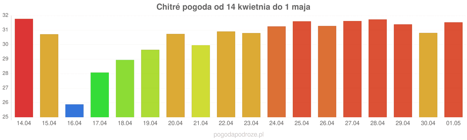 Jeśli wierzyć prognozom z odstępem czasu 7 dni to czeka nas dużo ciepła w Chitré w przyszłym tygodniu. Temperatura w ciągu dnia osiągnie 31 stopni.