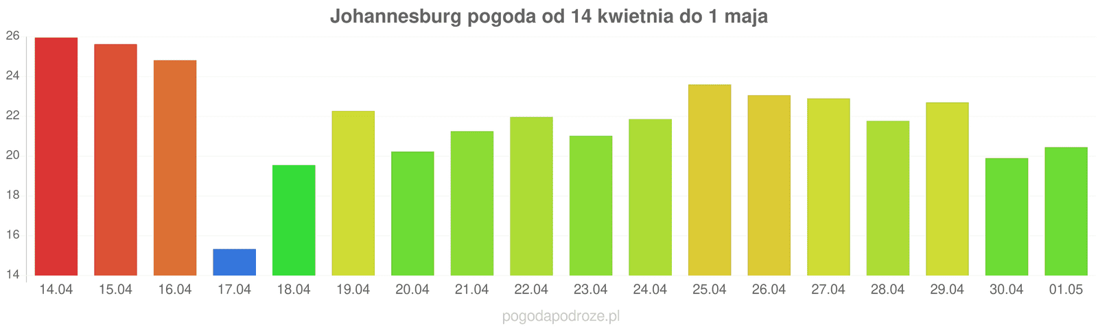 Według prognozy długoterminowej za tydzień w Johannesburg temperatura będzie spadać, w ciągu dnia można będzie obserwować temperatury około 21 stopni.