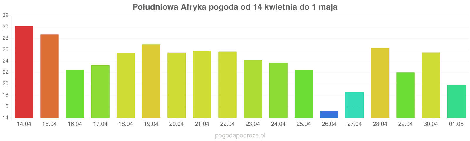 Według prognozy długoterminowej za tydzień w RPA temperatura wzrośnie i będzie trochę cieplej, w ciągu dnia termometry bedą notowały około 24 stopnie.
