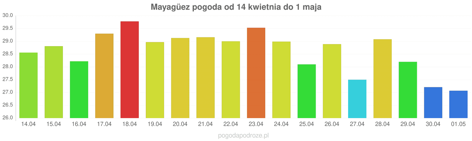 Z kolei jutro będzie jeszcze cieplej niż dziś w Mayagüez. Termometry pokażą w ciągu dnia 29 stopni.