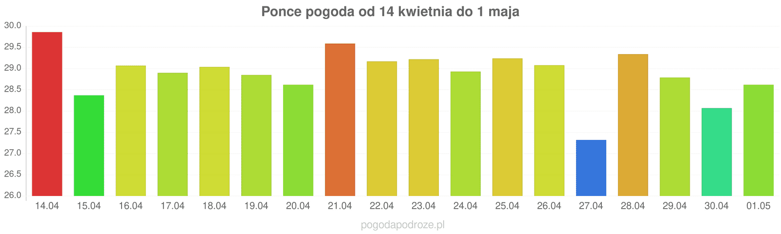 Jeśli wierzyć prognozom z odstępem czasu 7 dni to czeka nas dużo ciepła w Ponce w przyszłym tygodniu. Temperatura w ciągu dnia osiągnie 29 stopni.