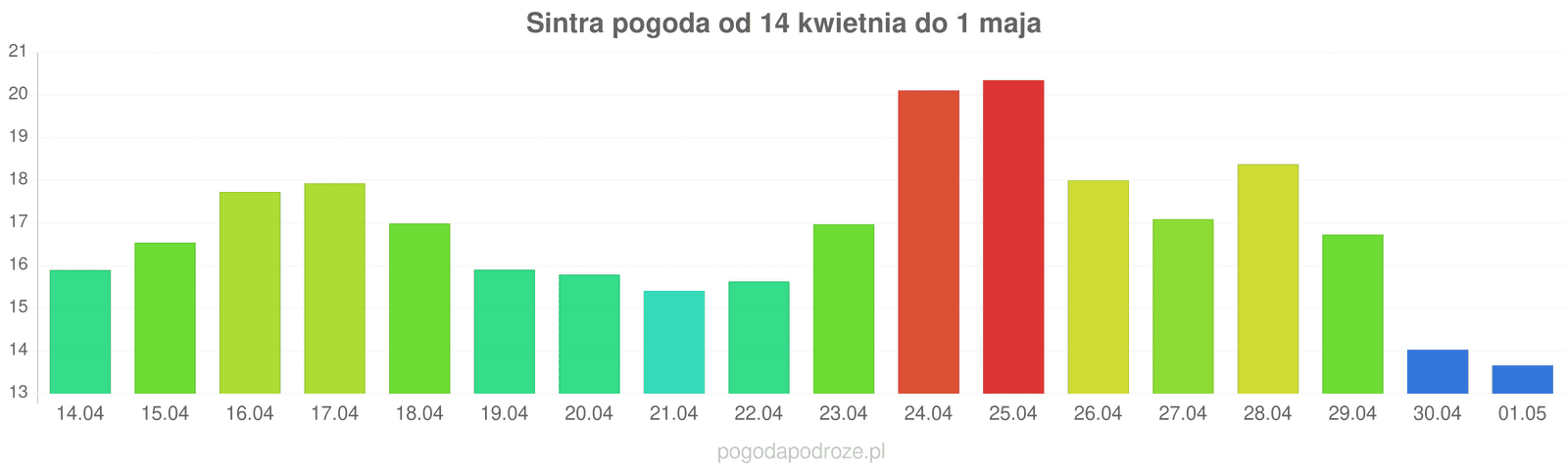 Według prognozy długoterminowej za tydzień w Sintrze temperatura będzie spadać, w ciągu dnia można będzie obserwować temperatury około 17 stopni.