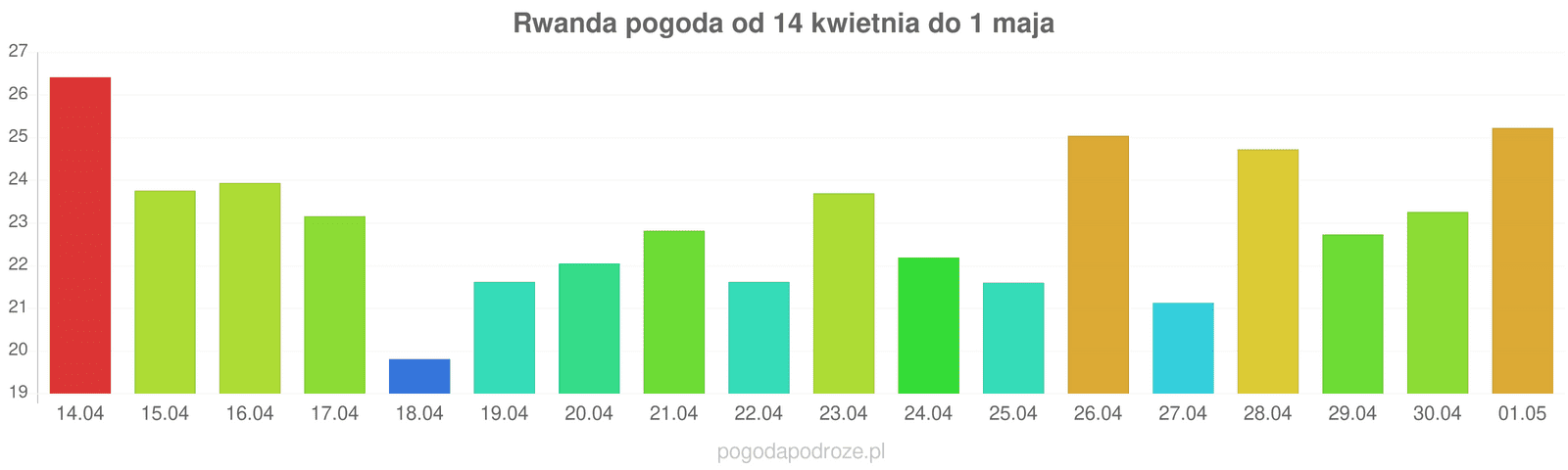 Według prognozy długoterminowej za tydzień w Rwandzie temperatura będzie spadać, w ciągu dnia można będzie obserwować temperatury około 24 stopnie.