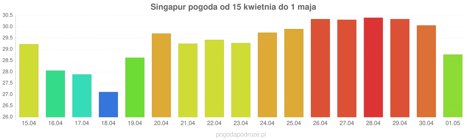 Jeśli wierzyć prognozom z odstępem czasu 7 dni to czeka nas dużo ciepła w Singapurze w przyszłym tygodniu. Temperatura w ciągu dnia osiągnie 29 stopni.