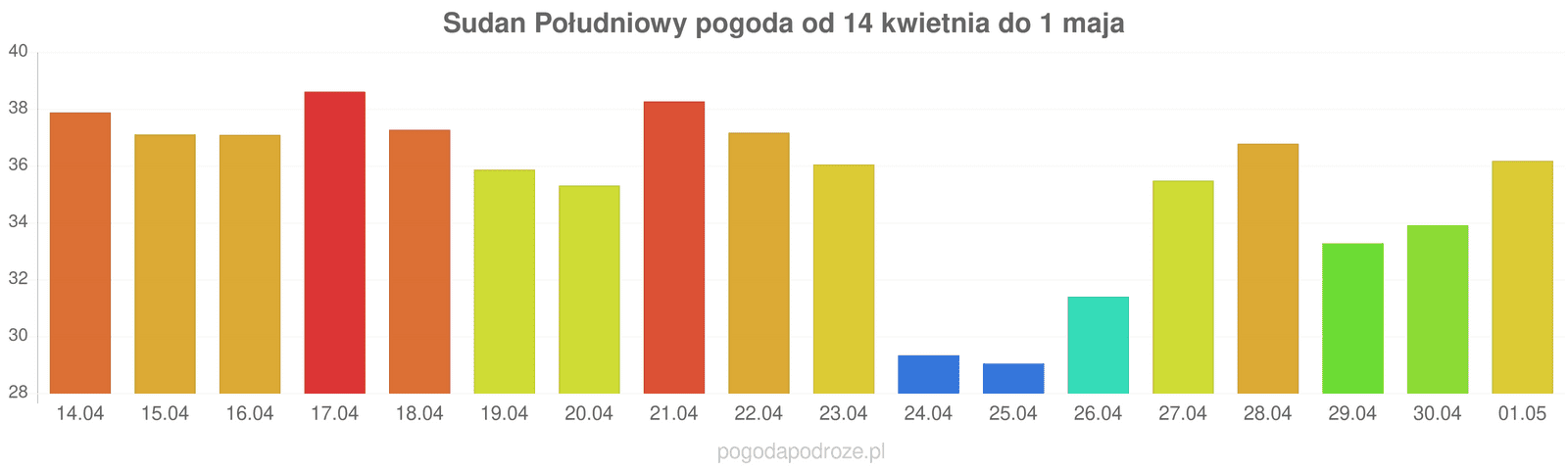 Z kolei jutro będzie jeszcze cieplej niż dziś w Sudanie Południowym. Termometry pokażą w ciągu dnia 39 stopni.