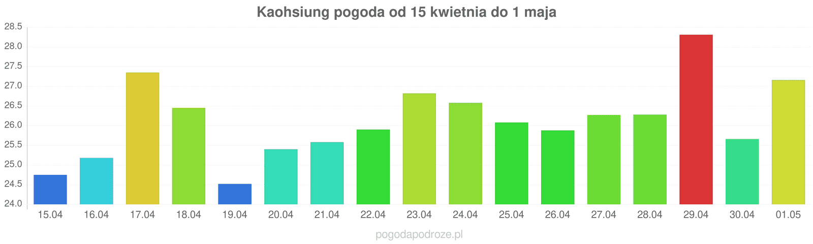 Z kolei jutro będzie jeszcze cieplej niż dziś w Kaohsiung. Termometry pokażą w ciągu dnia 27 stopni.