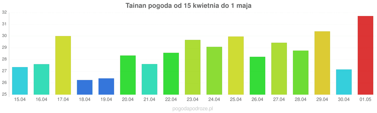 Jeśli wierzyć prognozom z odstępem czasu 7 dni to czeka nas dużo ciepła w Tainan w przyszłym tygodniu. Temperatura w ciągu dnia osiągnie 30 stopni.