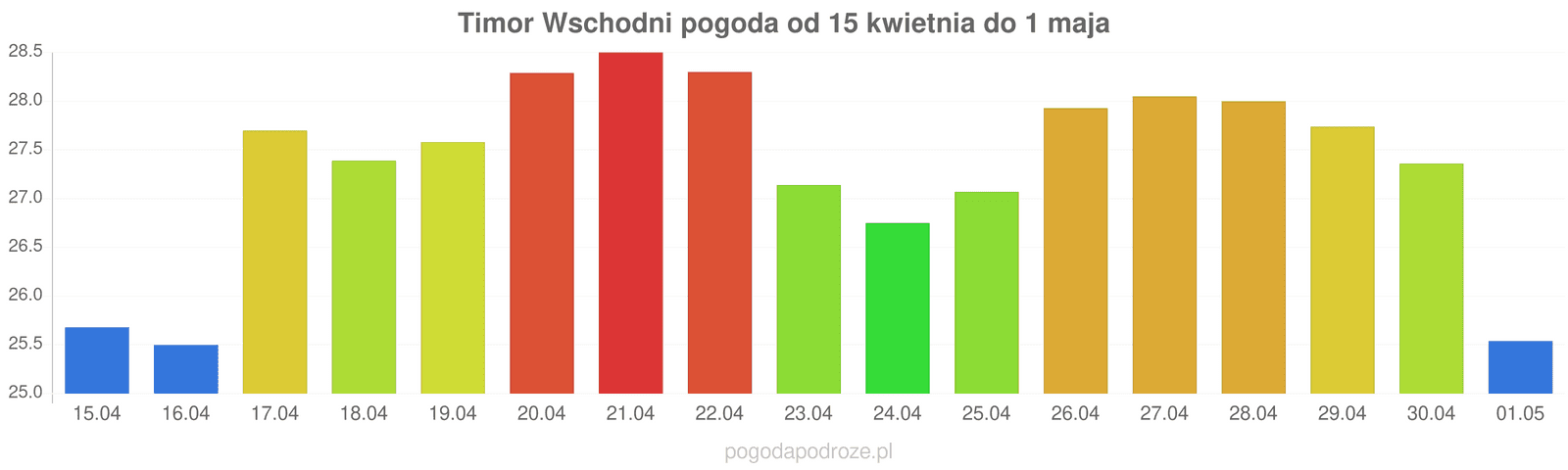 Z kolei jutro będzie jeszcze cieplej niż dziś na Timorze Wschodnim. Termometry pokażą w ciągu dnia 28 stopni.