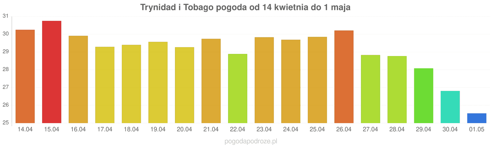 Jeśli damy wiarę prognozom z odstępem czasu 7 dni to czeka nas ochłodzenie w Trynidadzie i Tobago w przyszłym tygodniu. Temperatura w ciągu dnia powinna spaść do 30 stopni.