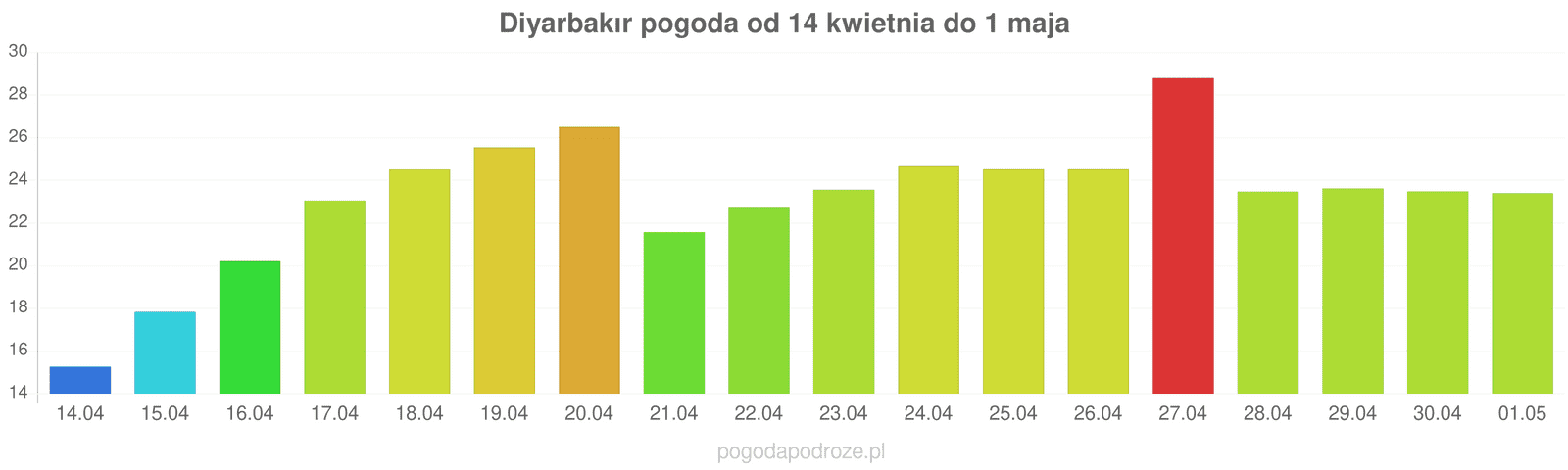 Według prognozy długoterminowej za tydzień w Diyarbakir temperatura wzrośnie i będzie trochę cieplej, w ciągu dnia termometry bedą notowały około 24 stopnie.