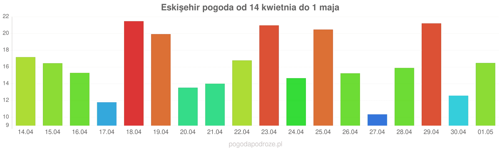 Według prognozy długoterminowej za tydzień w Eskişehir temperatura wzrośnie i będzie trochę cieplej, w ciągu dnia termometry bedą notowały około 21 stopni.