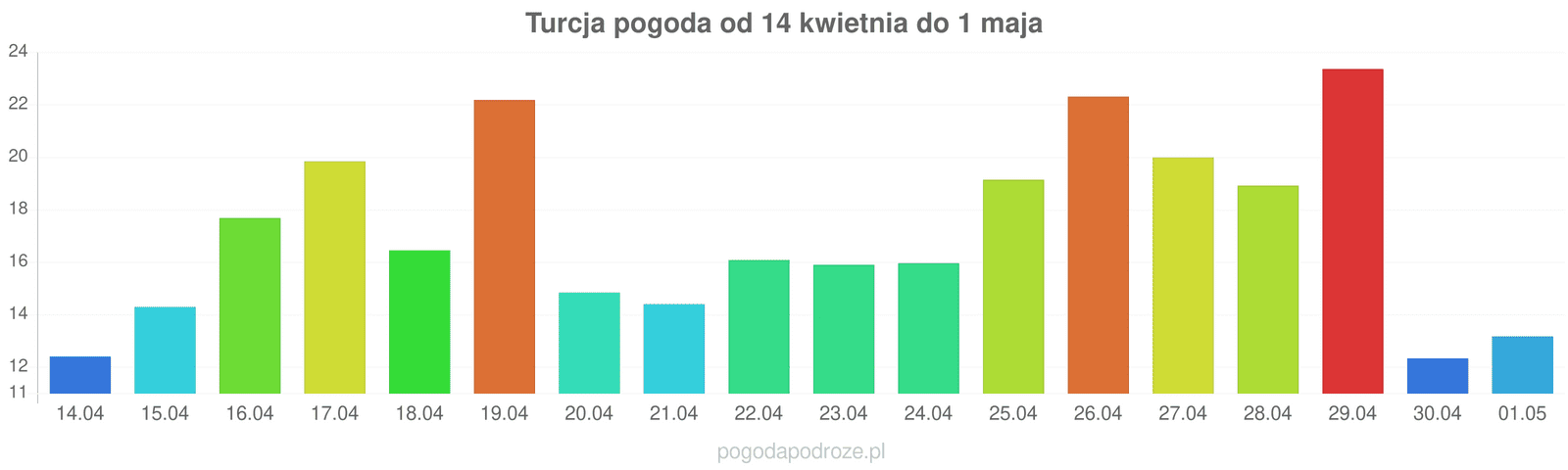 Według prognozy długoterminowej za tydzień w Turcji temperatura będzie spadać, w ciągu dnia można będzie obserwować temperatury około 16 stopni.