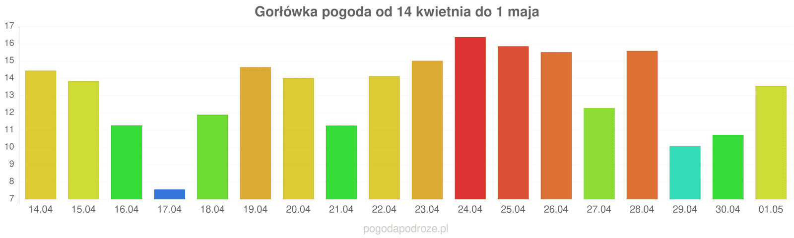 Na szczęście za tydzień będzie cieplej w Gorłówka :) Temperatura powinna wzrosnąć do 15 stopni.
