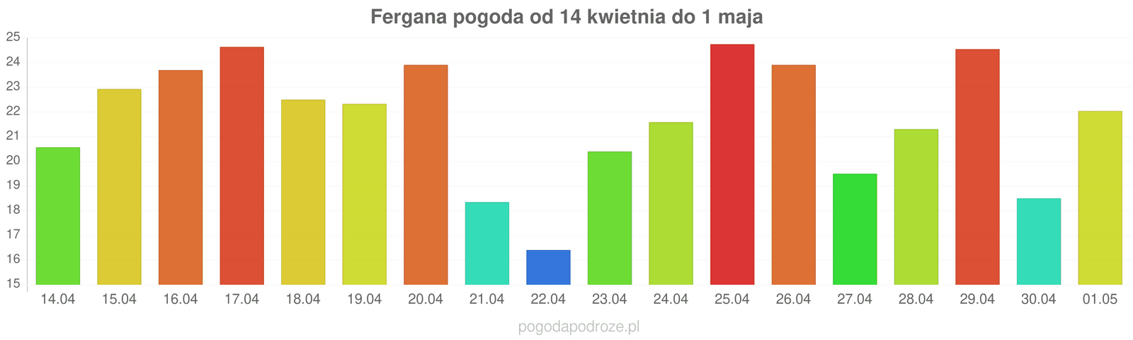 Według prognozy długoterminowej za tydzień w Fergana temperatura będzie spadać, w ciągu dnia można będzie obserwować temperatury około 20 stopni.