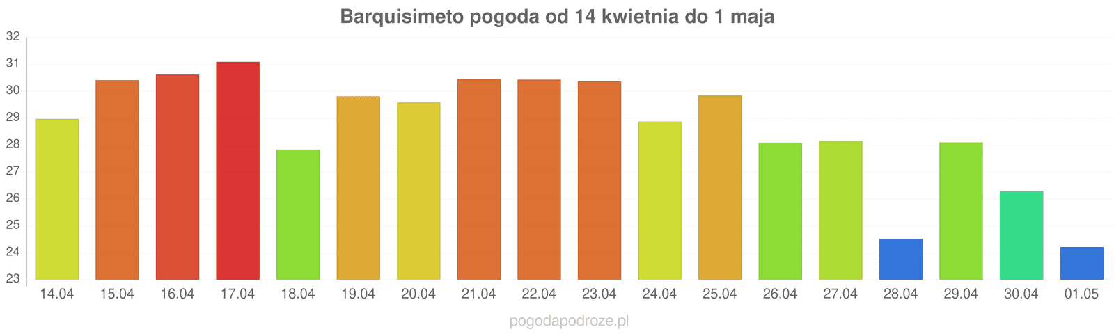 Z kolei jutro będzie jeszcze cieplej niż dziś w Barquisimeto. Termometry pokażą w ciągu dnia 31 stopni.
