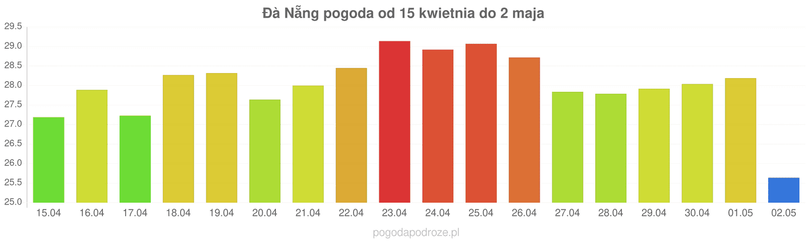 Jeśli wierzyć prognozom z odstępem czasu 7 dni to czeka nas dużo ciepła w Da Nang w przyszłym tygodniu. Temperatura w ciągu dnia osiągnie 29 stopni.