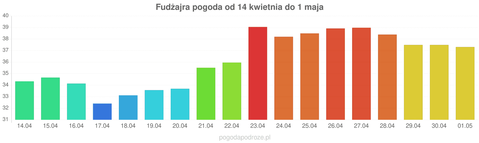 Jeśli wierzyć prognozom z odstępem czasu 7 dni to czeka nas dużo ciepła w Fujairah w przyszłym tygodniu. Temperatura w ciągu dnia osiągnie 39 stopni.